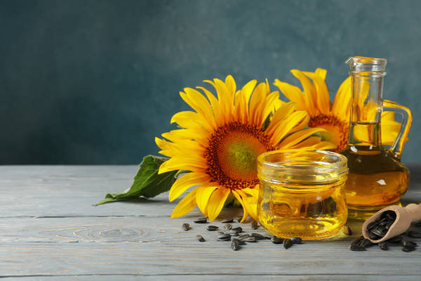 Sunflower oil is extremely high in vitamin E – an antioxidant that helps in preventing premature signs of aging, as it helps protect the skin from exposure to sunlight. Sunflower oil has emollient properties that help the skin retain its moisture. The vitamin E it contains, helps trap moisture inside skin cells, keeping skin hydrated for a longer period.